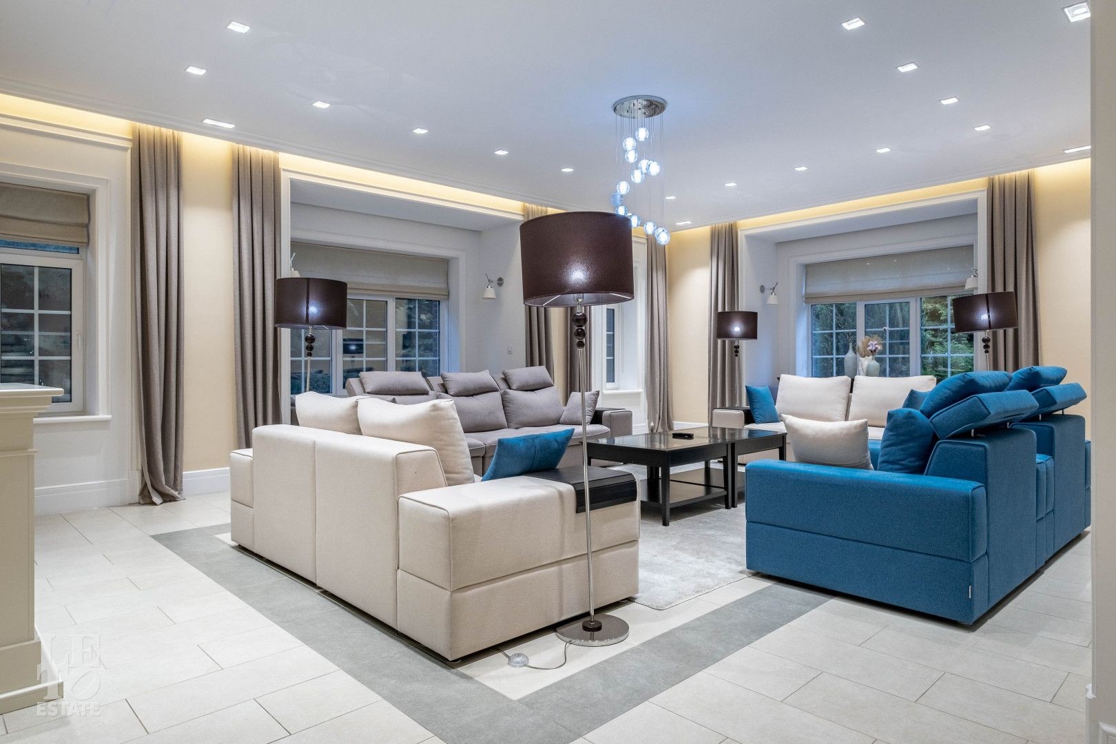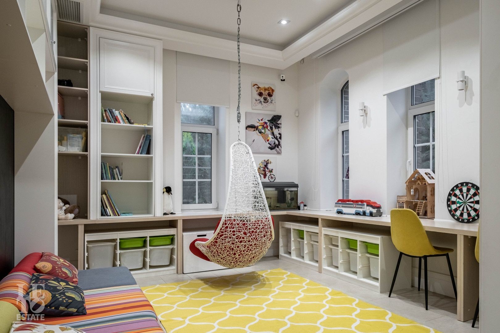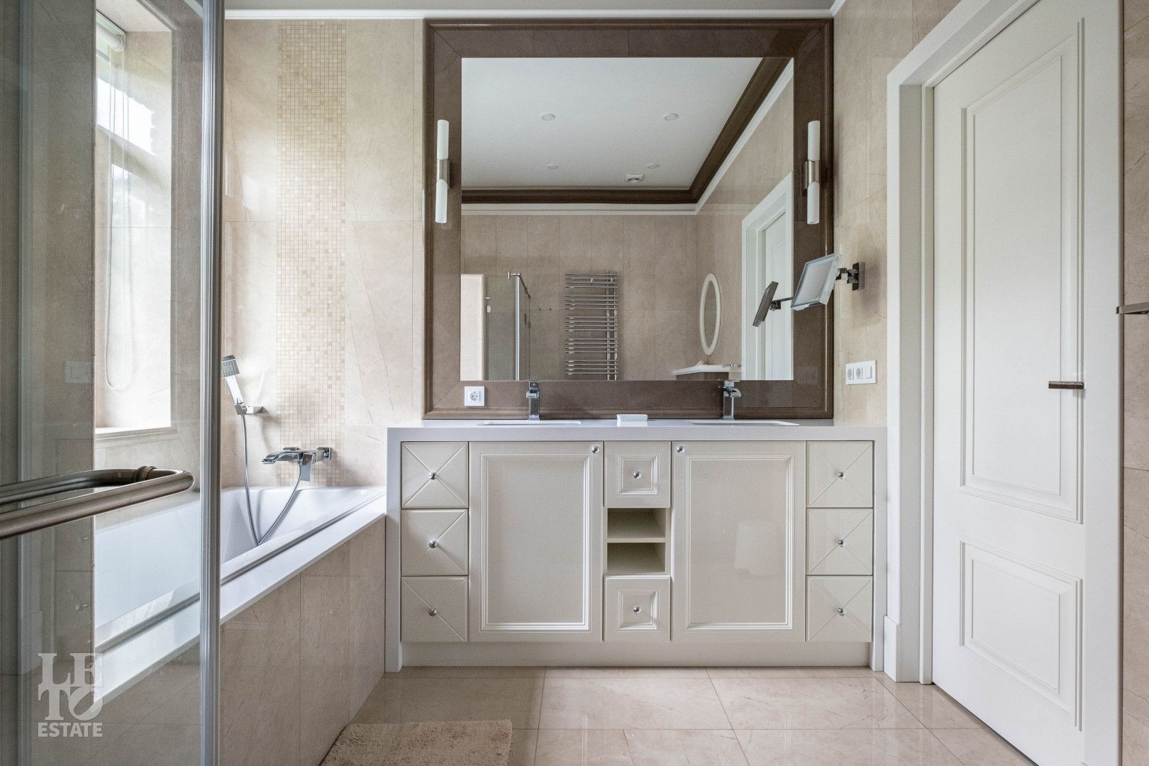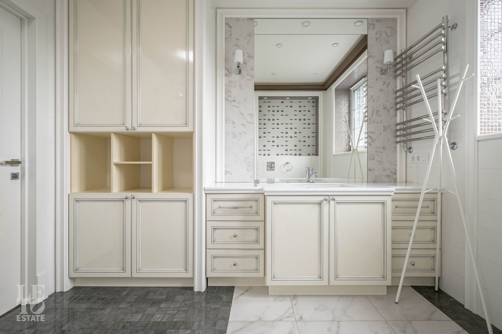 Второй этаж: мастер-спальня с гардеробной и санузлом, детский блок (две спальни с собственными гардеробными, санузел, кладовая), спальня с санунзлом, комната с санузлом и гардеробной;