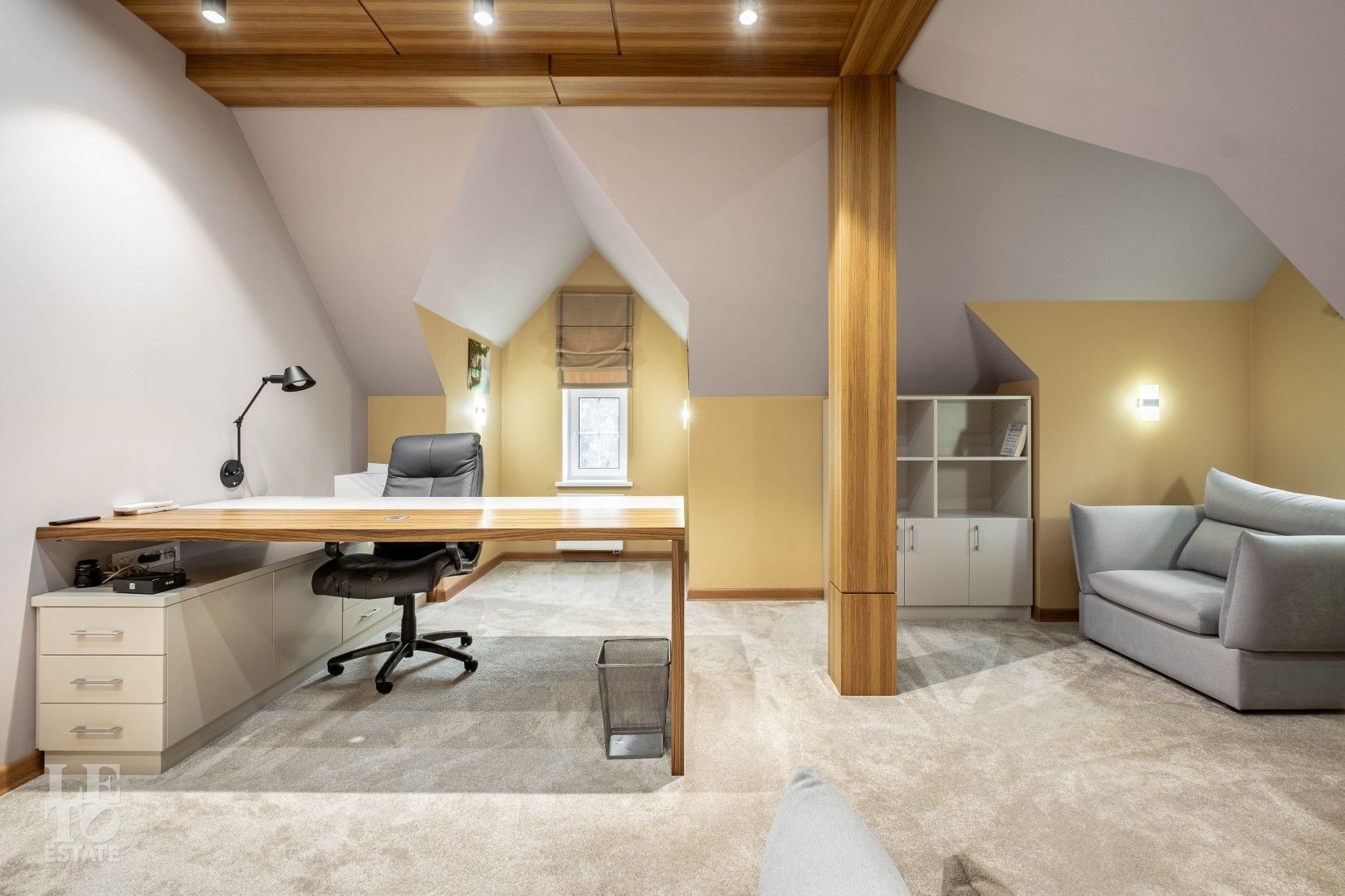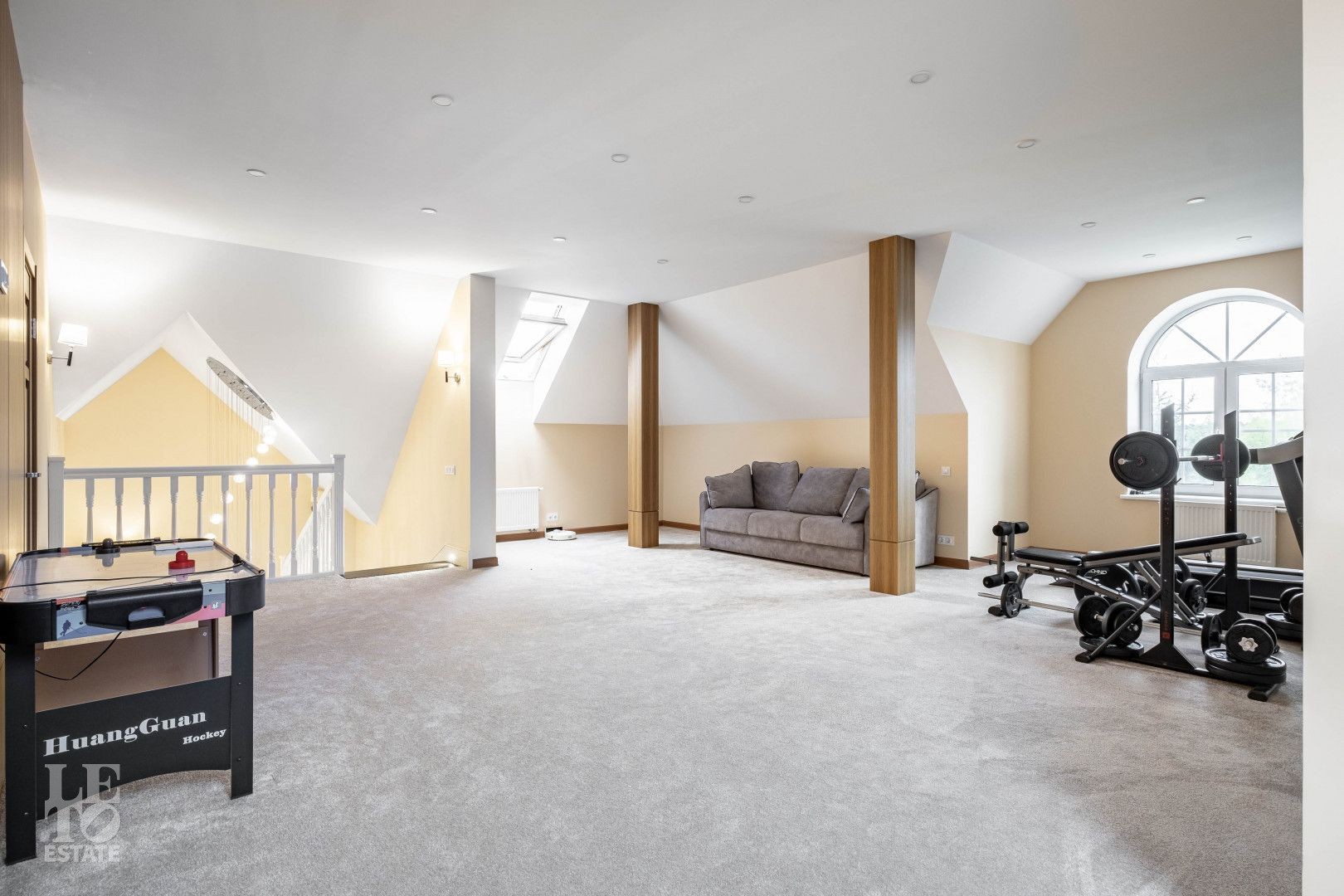 Мансардный этаж: тренажерный зал, кабинет, кладовая, техническое помещение, комната.